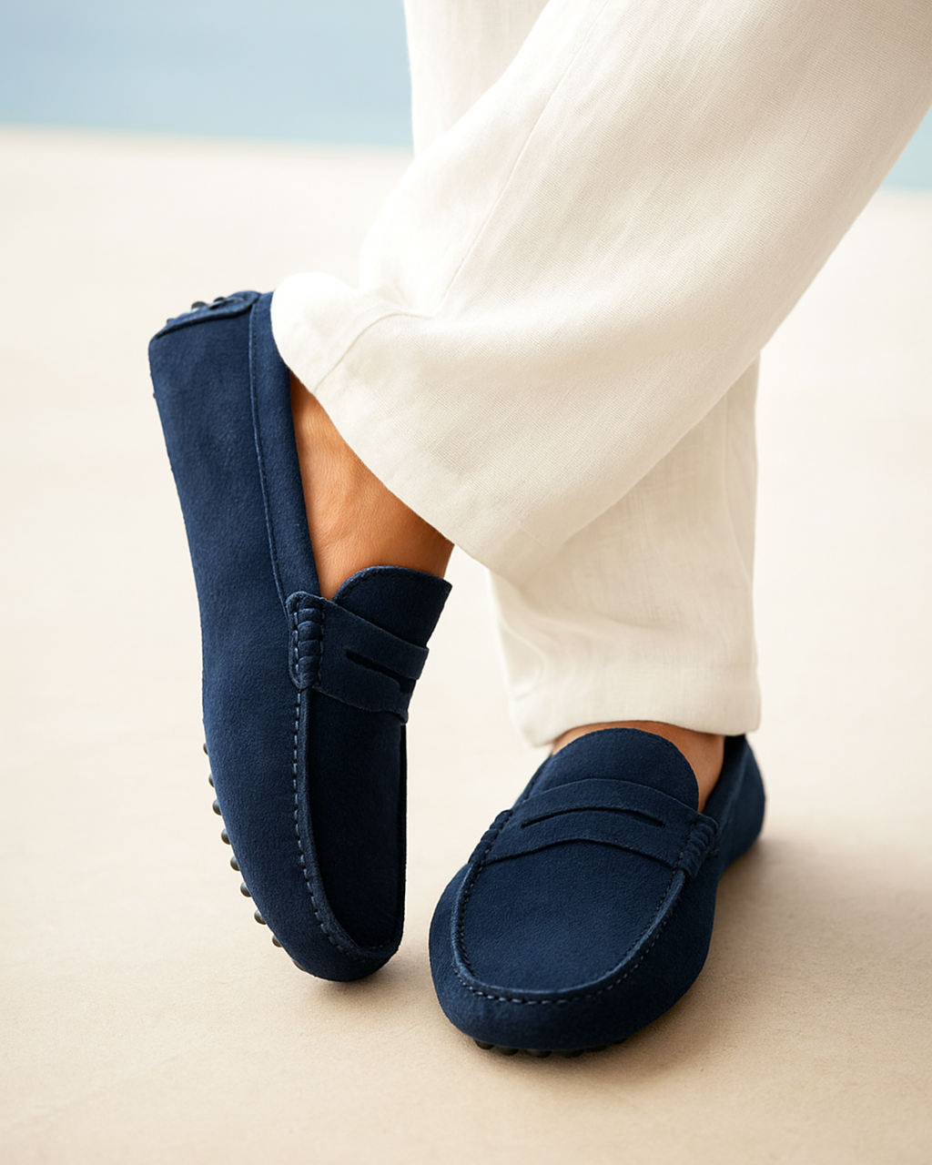 Discover Luxury Slip-Ons, the epitome of refined style and ultimate comfort. These exquisite loafers feature meticulously crafted uppers in soft calf suede leather, adorned with delicate stitching. The all-leather insole ensures not only enduring quality but also a blissful fit.