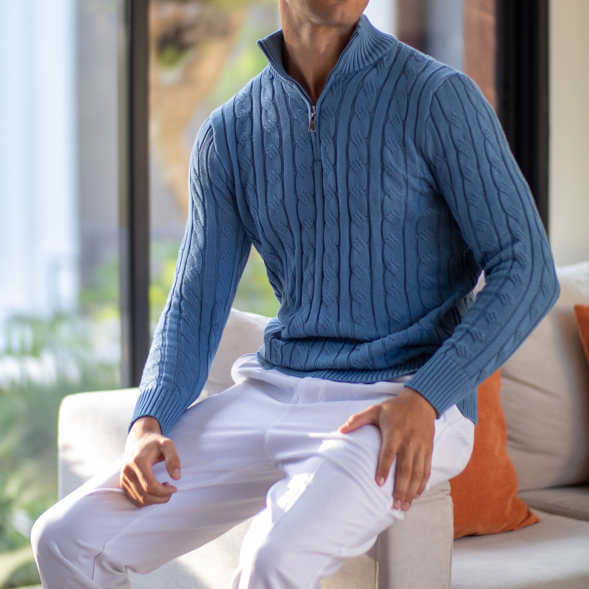 TAEBAEK Zipped Cable Sweater: Meticulously crafted with premium materials, this sweater offers unmatched warmth and sophistication, making it a versatile staple for any wardrobe.
